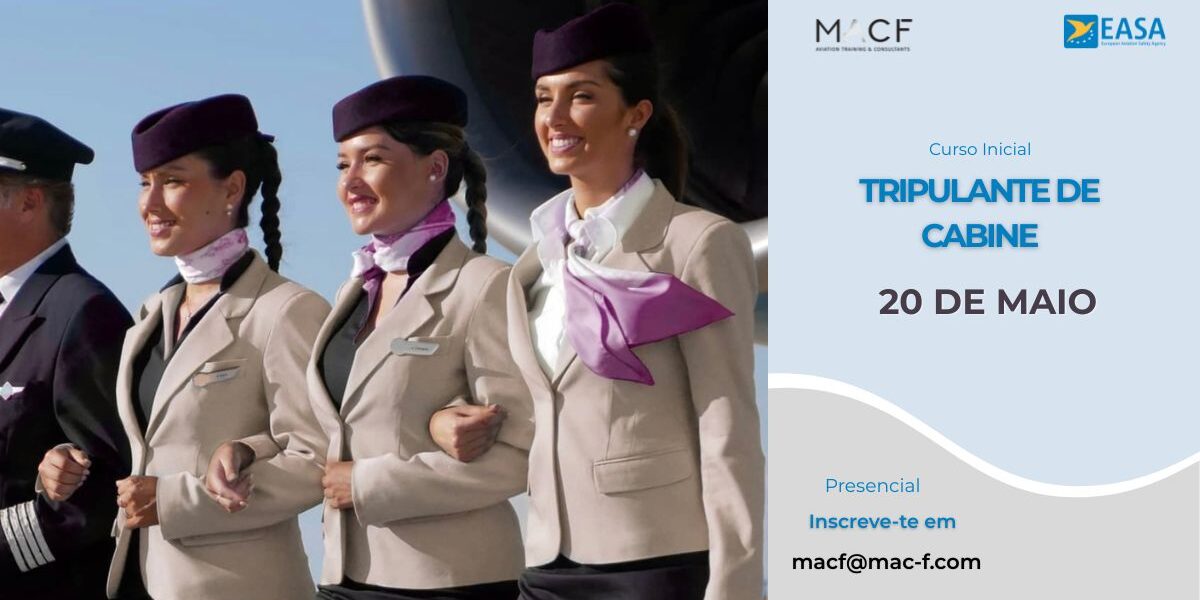 O próximo Curso de Formação Inicial de Tripulantes de Cabine, tem início marcado para o próximo dia 20 de Maio.